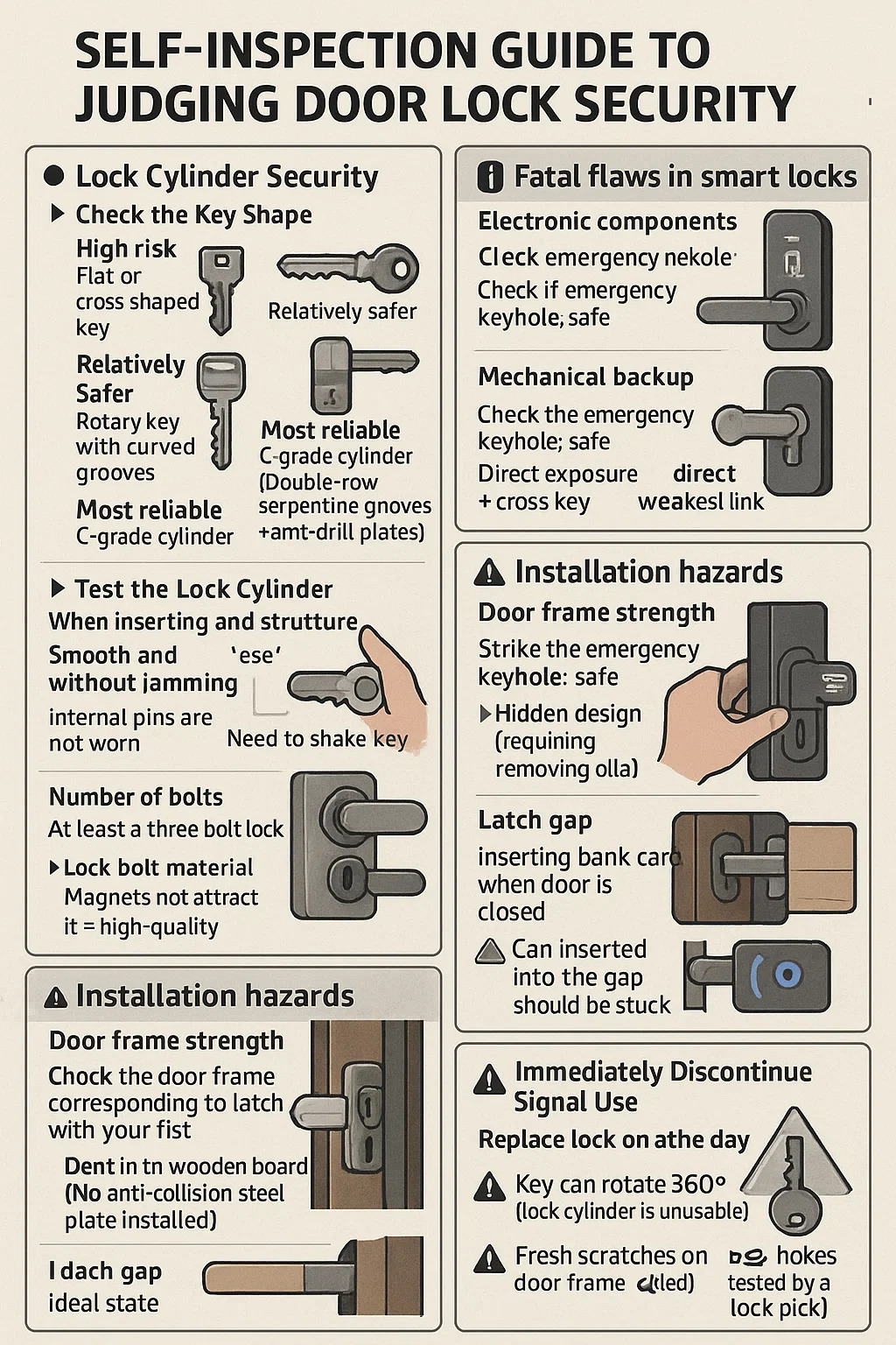 Hier ist ein praktischer Leitfaden zur Selbstkontrolle bei der Beurteilung Türschloss Sicherheit, basierend auf der Erfahrung erfahrener Hardware-Mechaniker vor Ort: