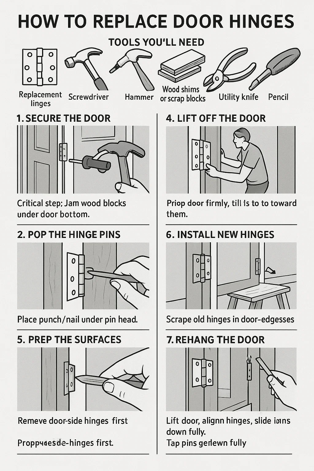 Hier ist eine praktische, Schritt-für-Schritt-Anleitung zum Ersetzen Türscharniere :