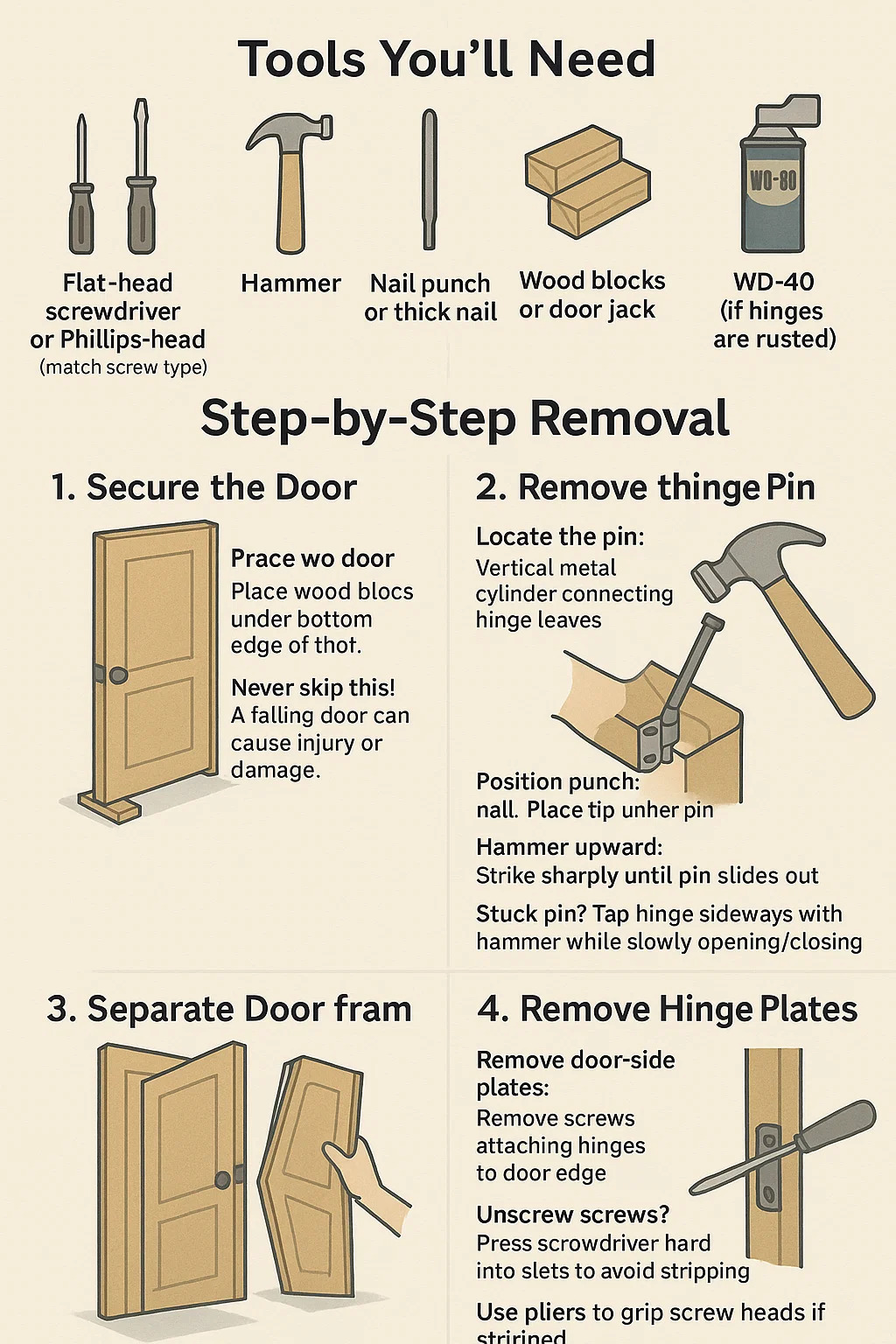 Heben Sie die Tür vertikal an, sobald die Stifte entfernt sind.