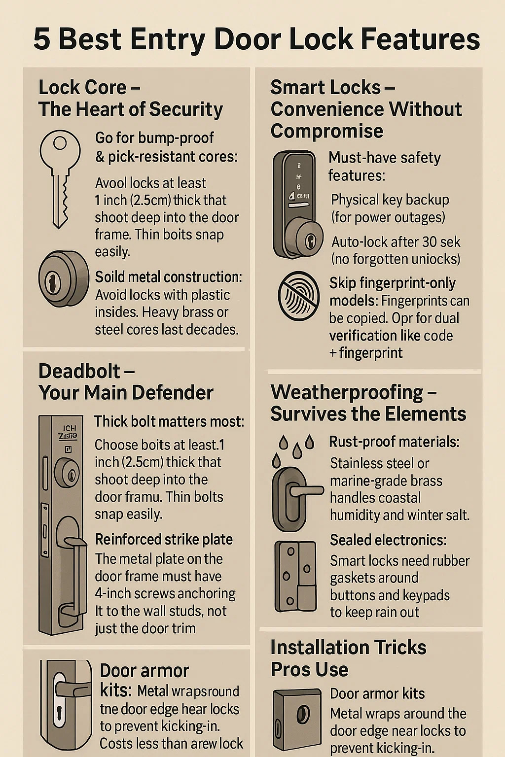 Hier ist eine praktische Aufschlüsselung des besten Eintrags Türschloss Merkmale, basierend auf den tatsächlichen Empfehlungen von Schlossern und erfahrenen Hausbesitzern: